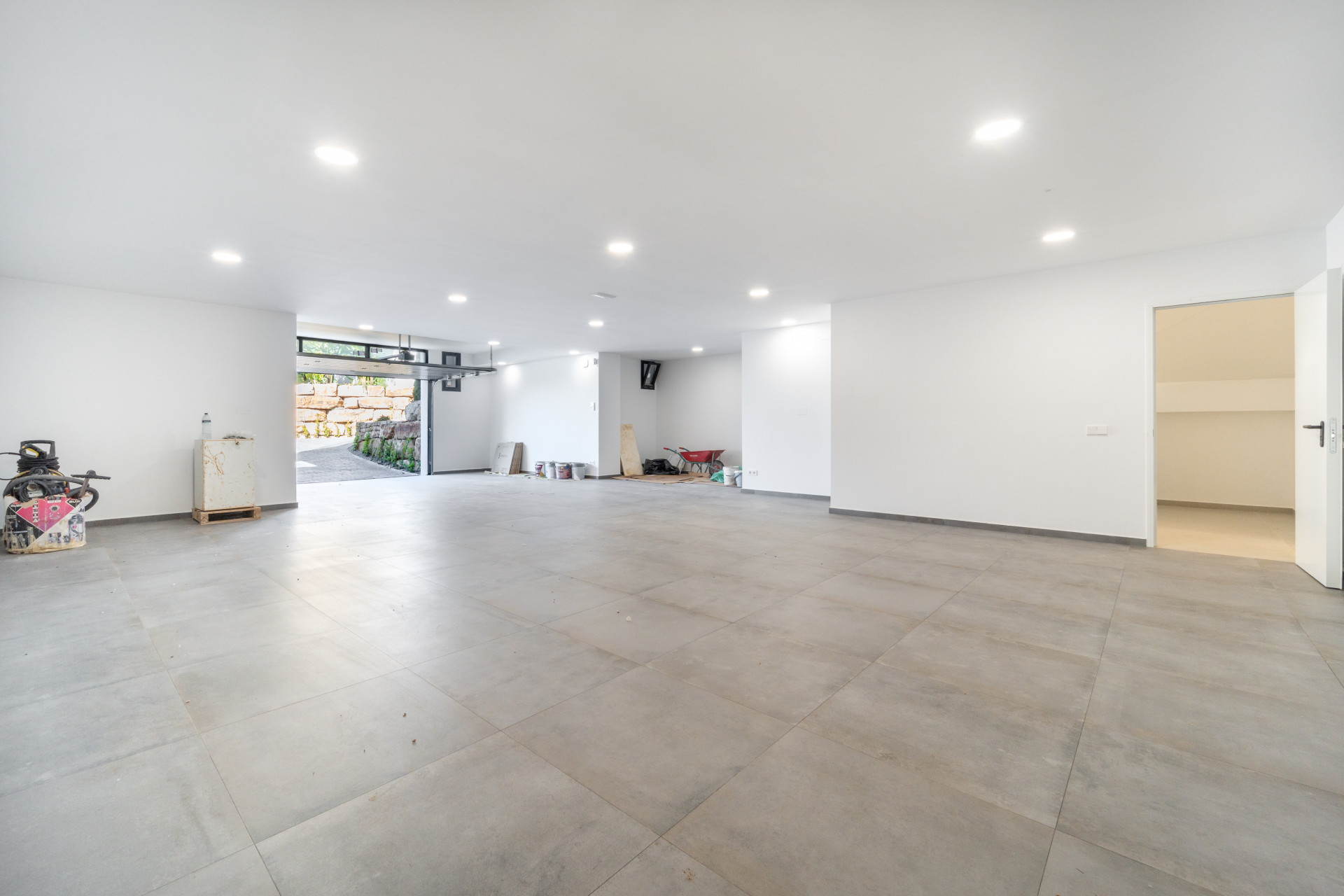 On the lower level, the property is fully basemented and currently left open, offering significant flexibility. Whether envisioned as a gym, wellness area, cinema room or additional living space, the possibilities are extensive and can be adapted over time. This level also includes a dedicated wine cellar and a very spacious garage with capacity for up to five cars.