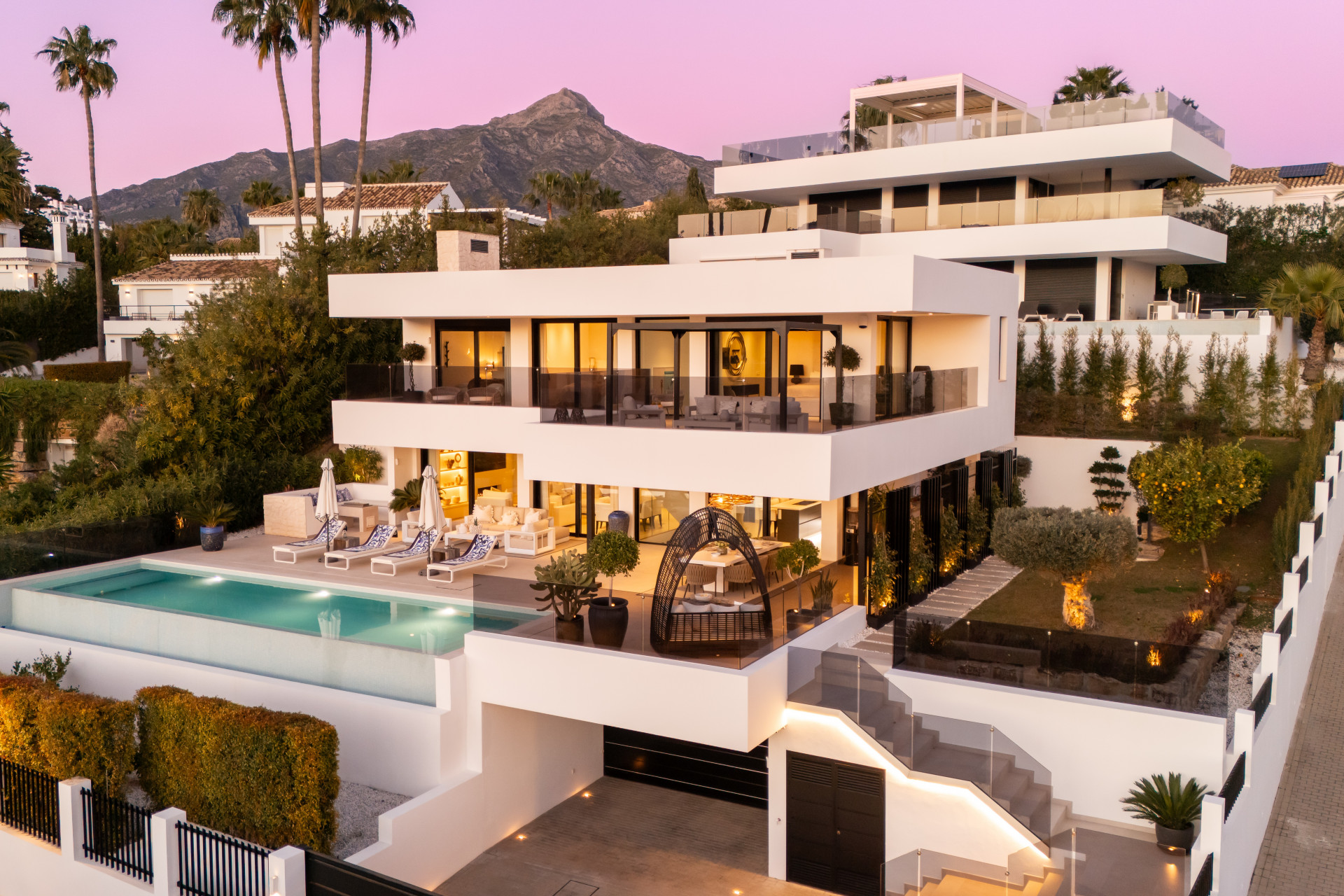 Located in the heart of Nueva Andalucía’s prestigious Golf Valley, this refined contemporary villa offers an exceptional blend of modern design, privacy, and panoramic golf views. With a privileged west-facing orientation overlooking the renowned Los Naranjos Golf Course, the property enjoys uninterrupted sunsets and a tranquil, green setting just minutes from Marbella’s finest amenities.