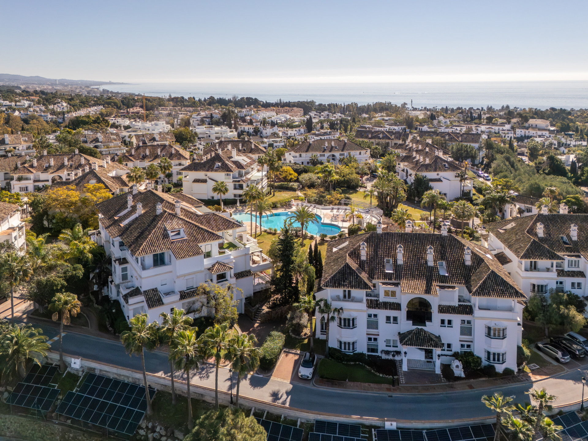 Monte Paraíso is one of Marbella’s most established and sought-after residential communities. Residents enjoy a secure, gated environment with beautifully maintained gardens, a communal swimming pool, and a fully equipped gym. The location combines proximity to golf courses, Marbella centre, and the coastline with a peaceful, residential atmosphere.