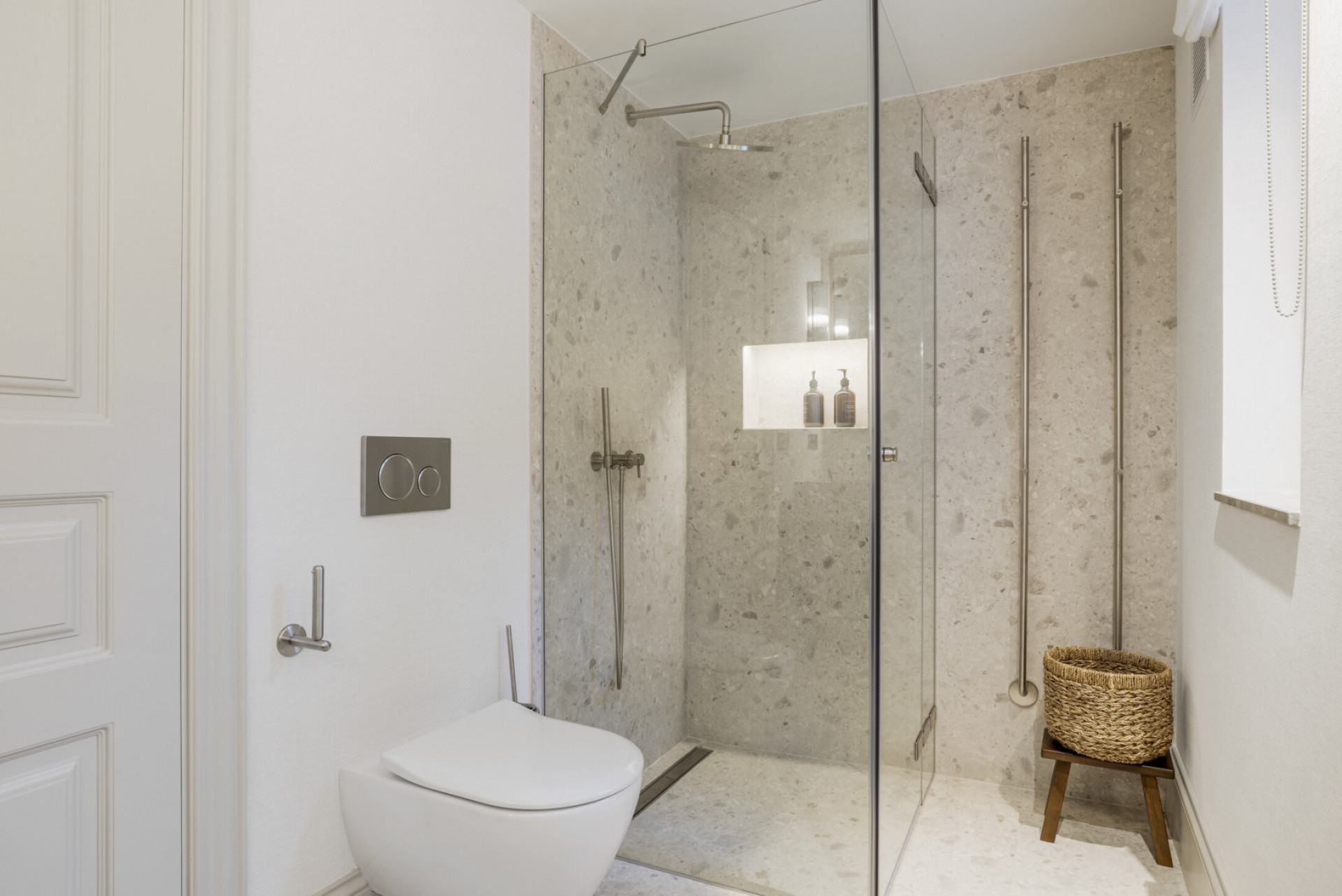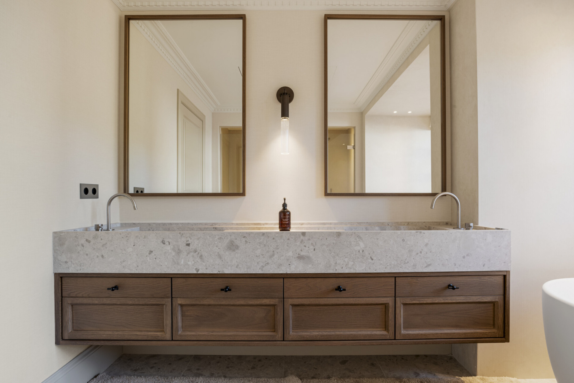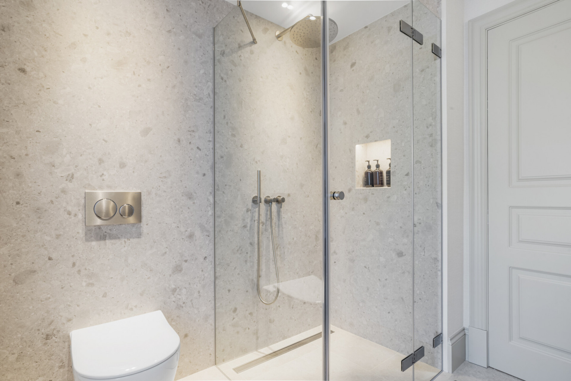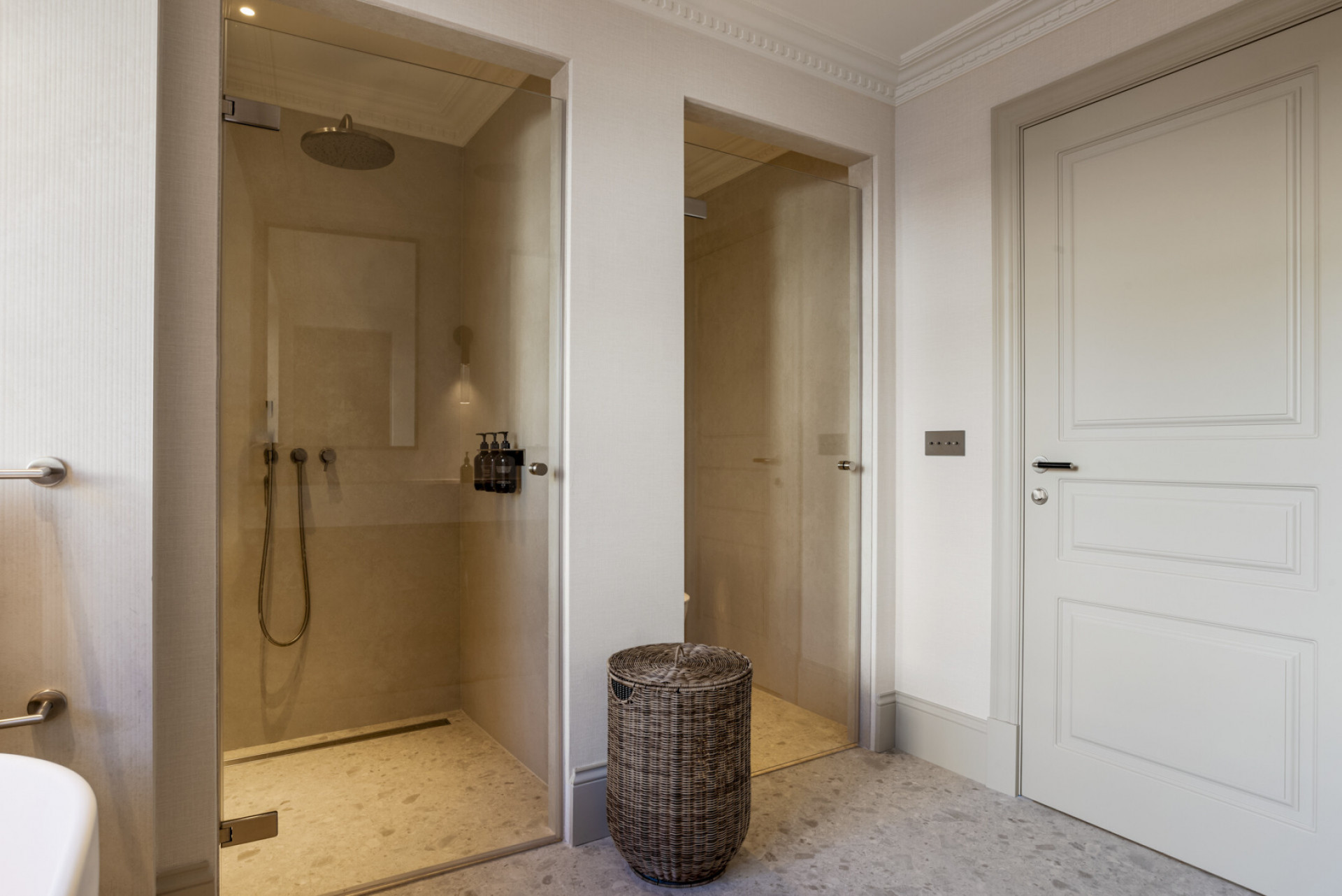 Inside, the home is designed with clarity and functionality in mind. The custom-designed kitchen combines usability with refined aesthetics, while the open-plan living and dining areas feature elevated ceilings, natural light, and direct access to the terraces. A soft, neutral palette with subtle timber detailing enhances the sense of warmth and cohesion throughout, complemented by underfloor heating across the entire home for year-round comfort.