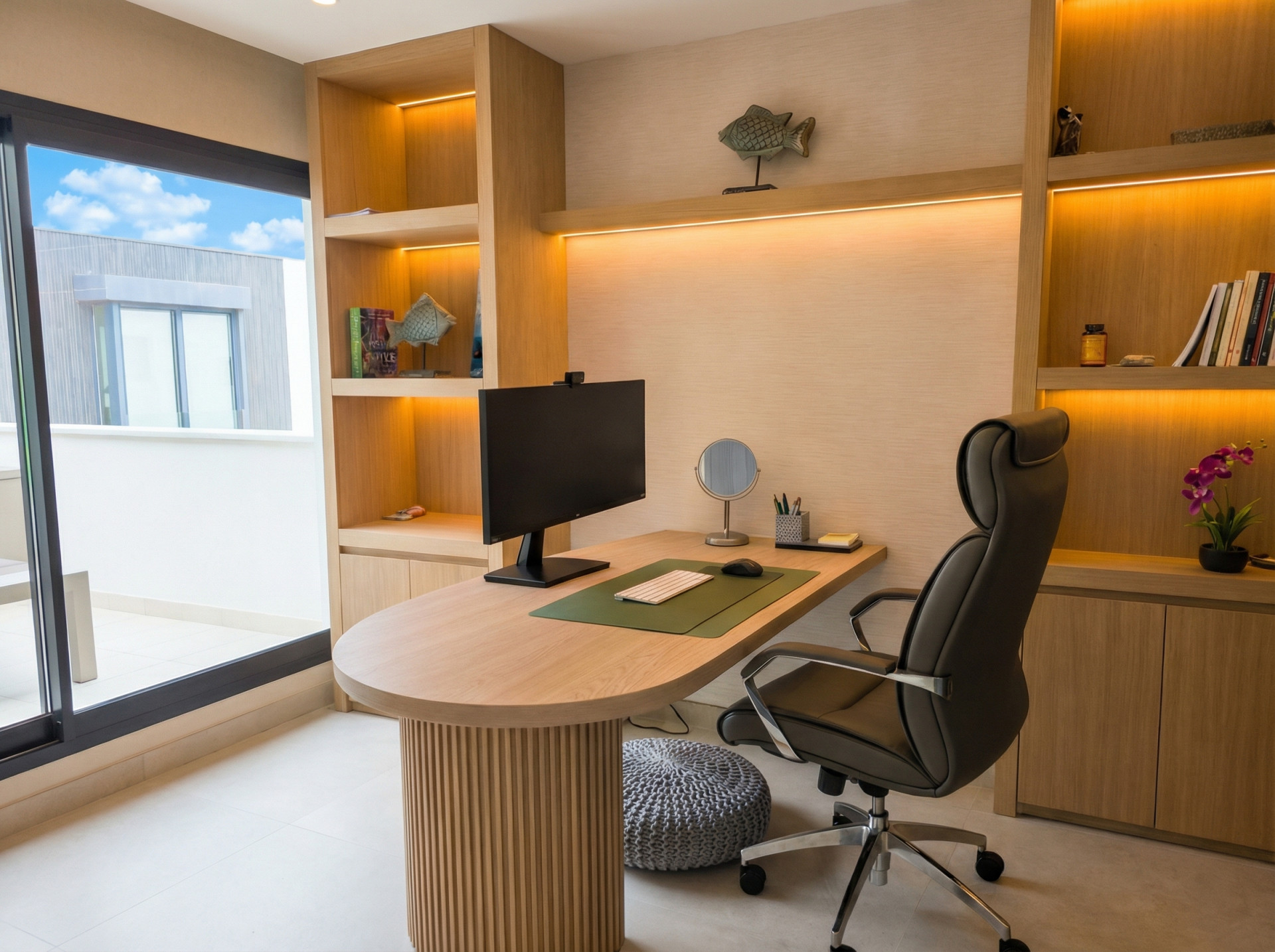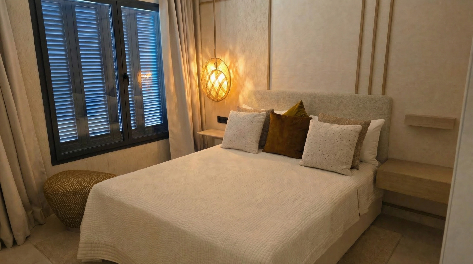 The renovation was entrusted to Jaflores Exclusive Design, an internationally recognised luxury interior studio headquartered on Marbella's Golden Mile. With a portfolio spanning high-end residences worldwide, Jaflores brings a rare combination of creative vision and craftsmanship — producing bespoke wooden furniture in their own manufacturing facility and operating prestigious multibrand design galleries on the Golden Mile, in Dubai, and in Kuwait. Every detail of this home reflects that pedigree.